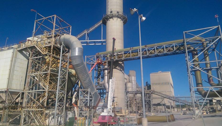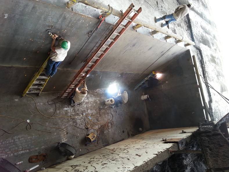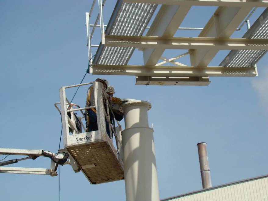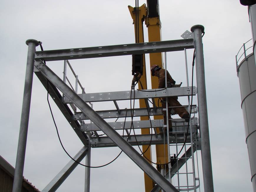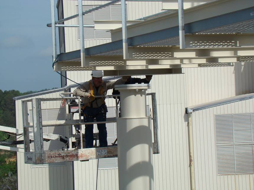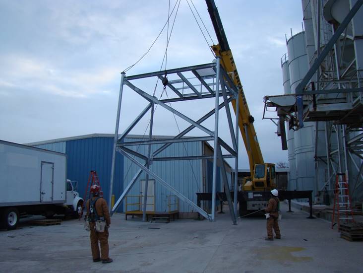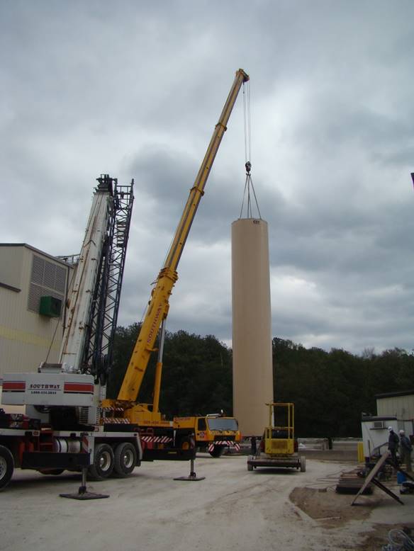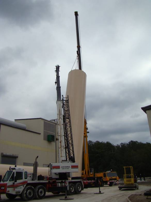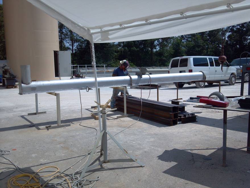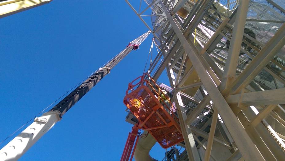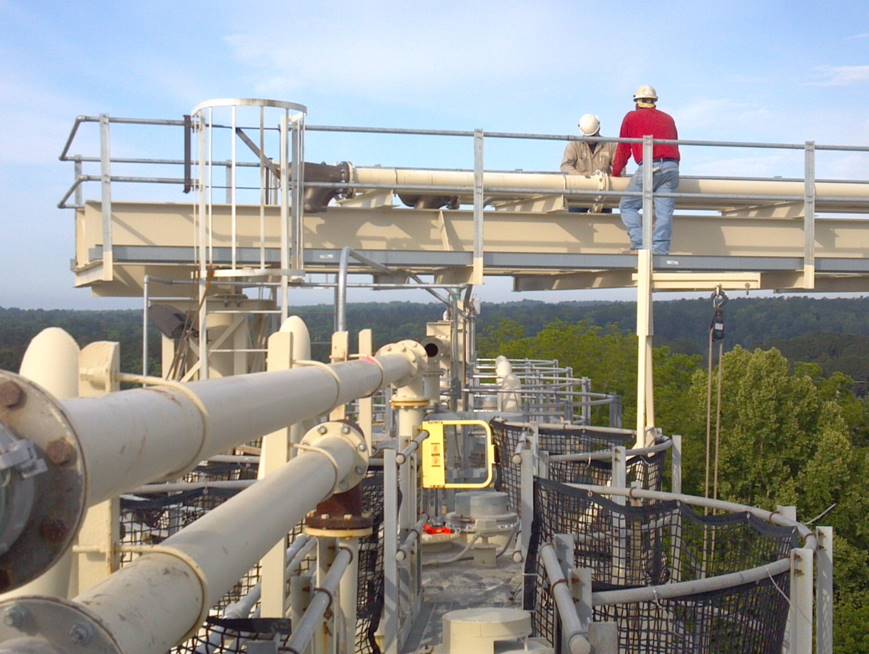 Replacement of 16” spout pipe 32’ above the mill roof and 177 feet above ground level while mill is running.