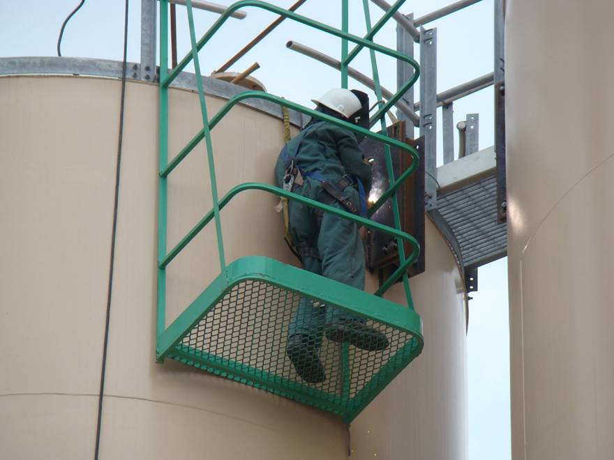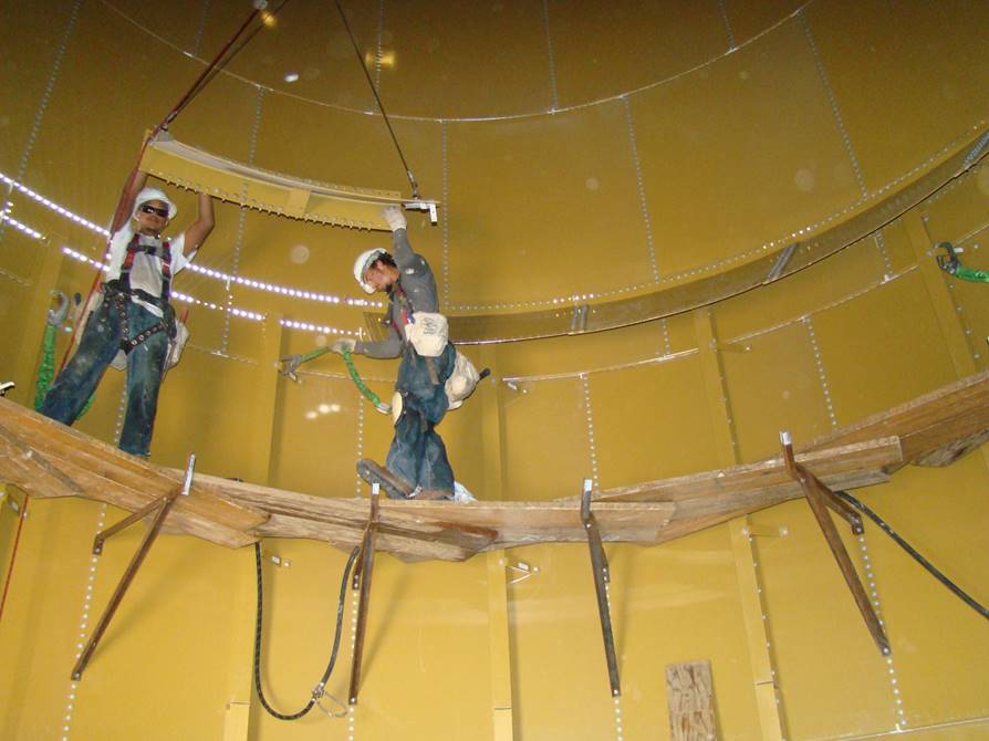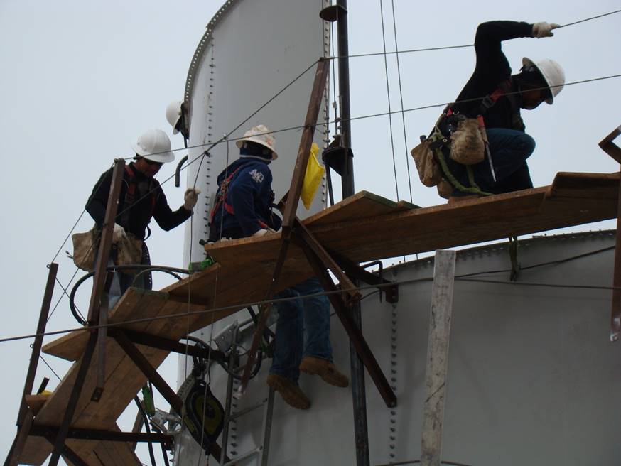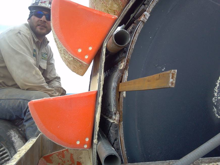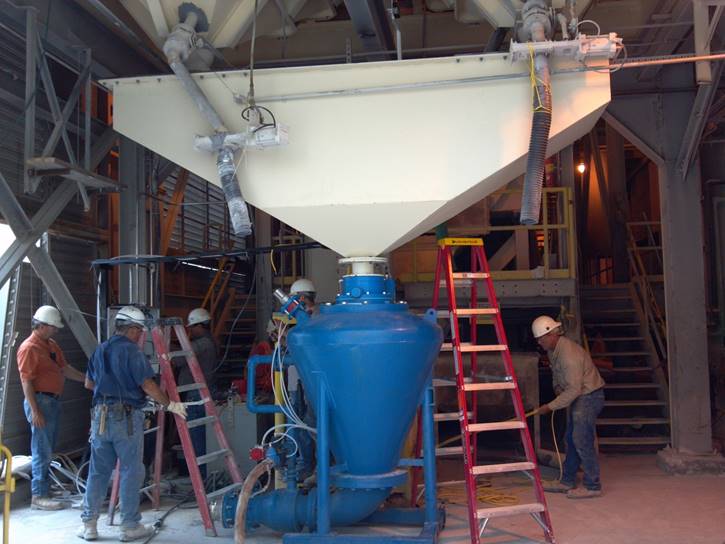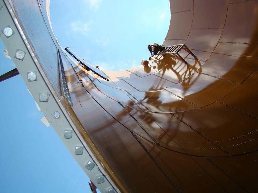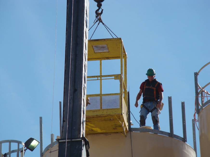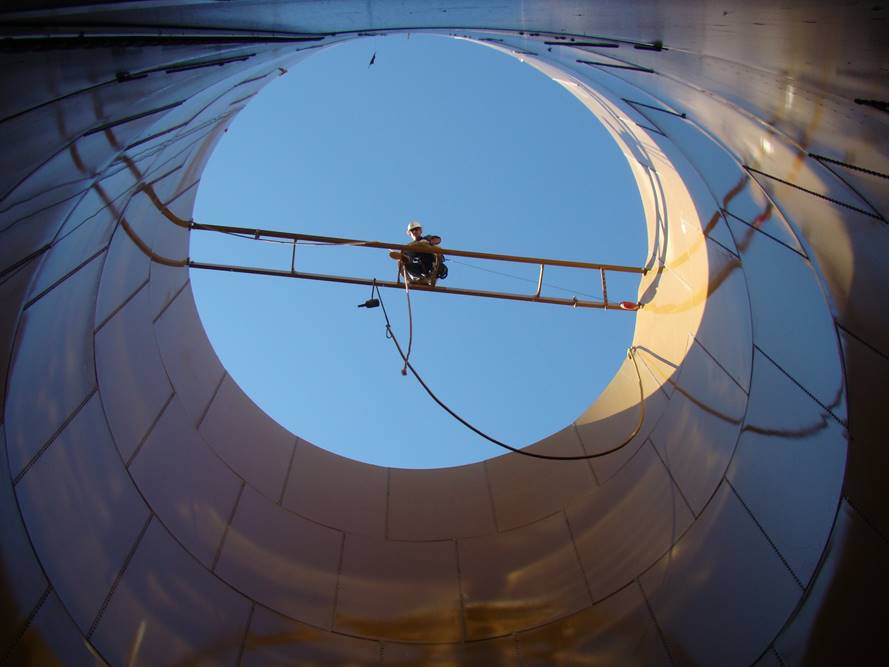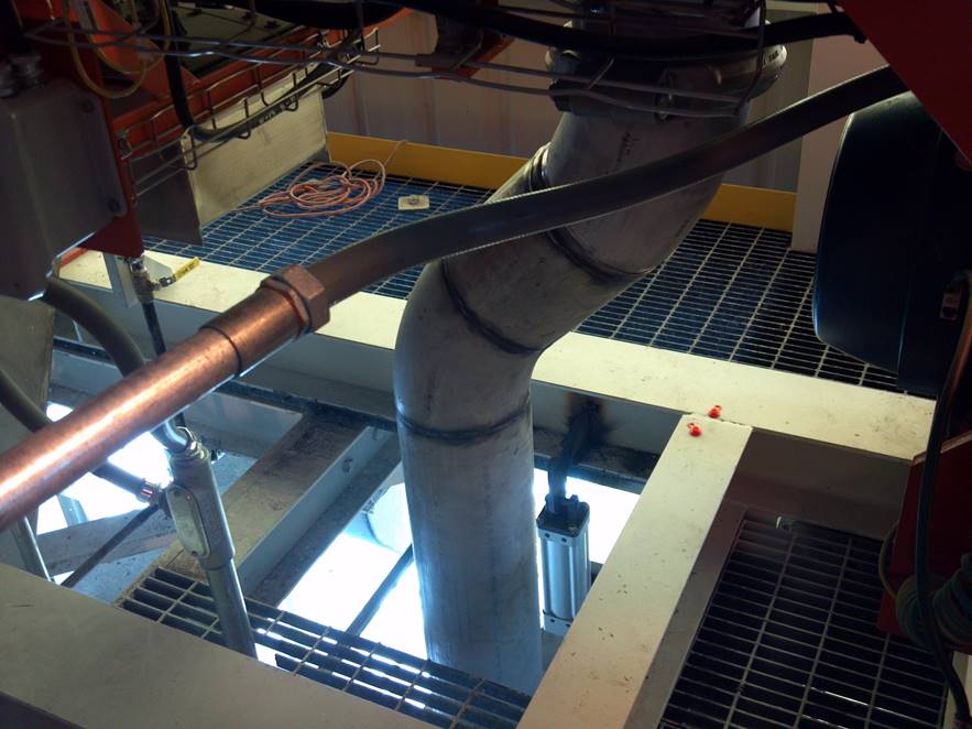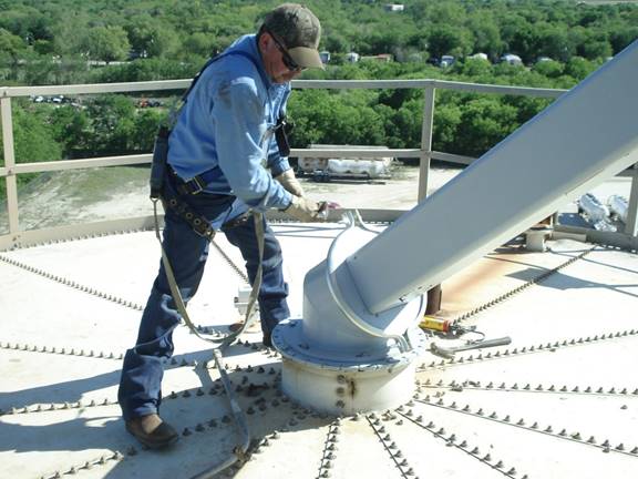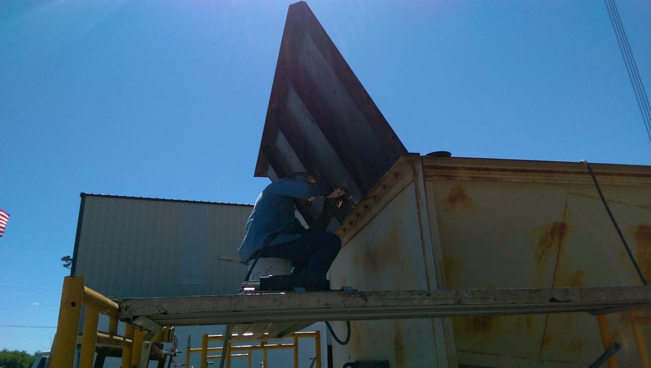 Replacement of 16” spout pipe 32’ above the mill roof and 177 feet above ground level while mill is running.