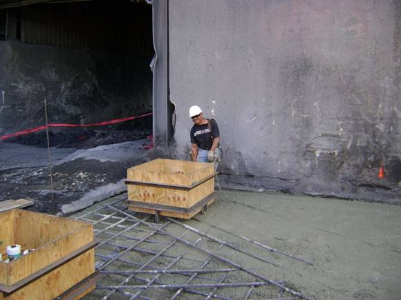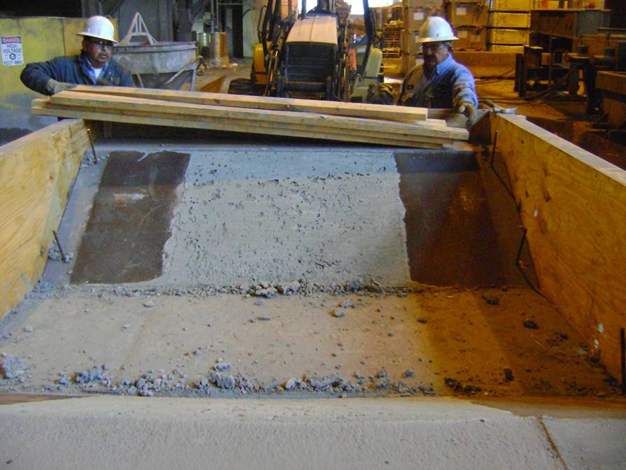 9 ft. depth drain flume cut into floor to a tunnel for a steel mill