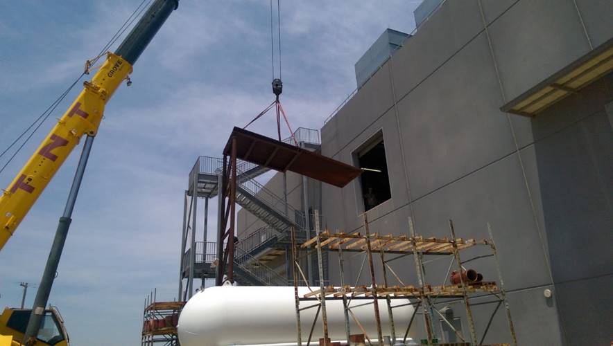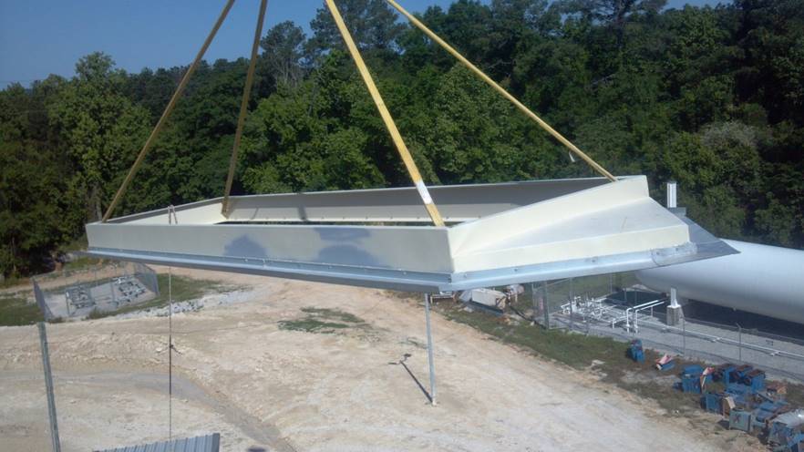 A design-build roof opening for crane access of centrafuge machines on the elevated production floor