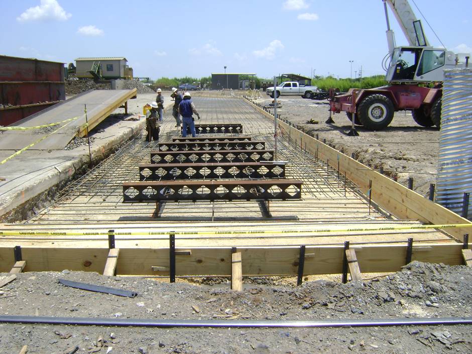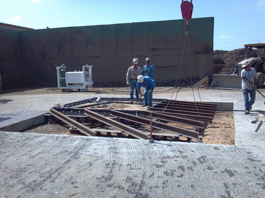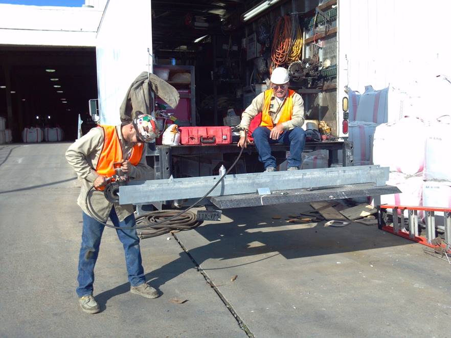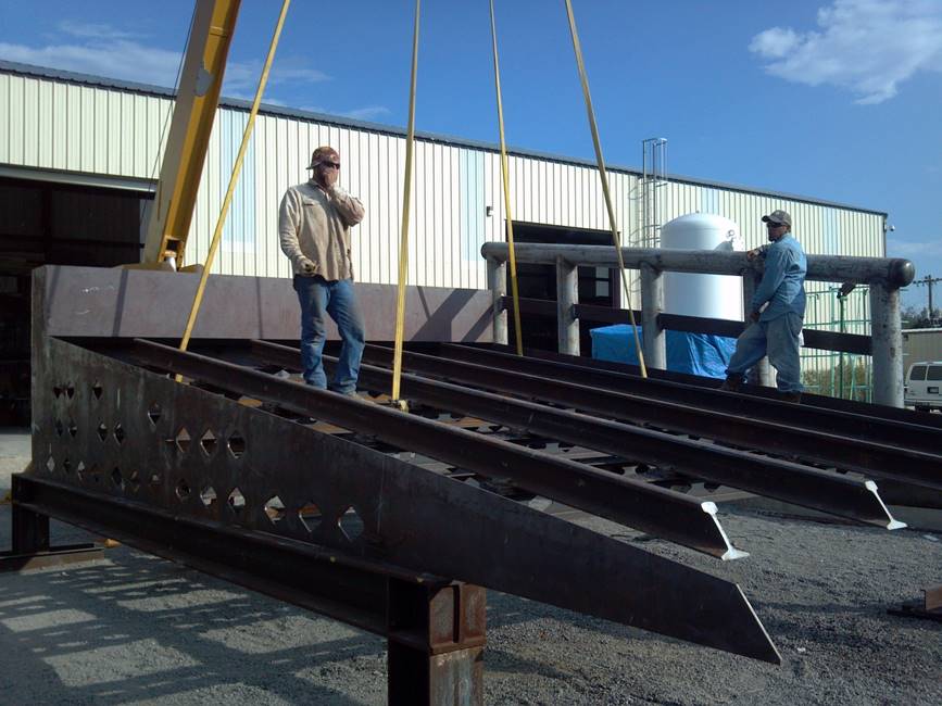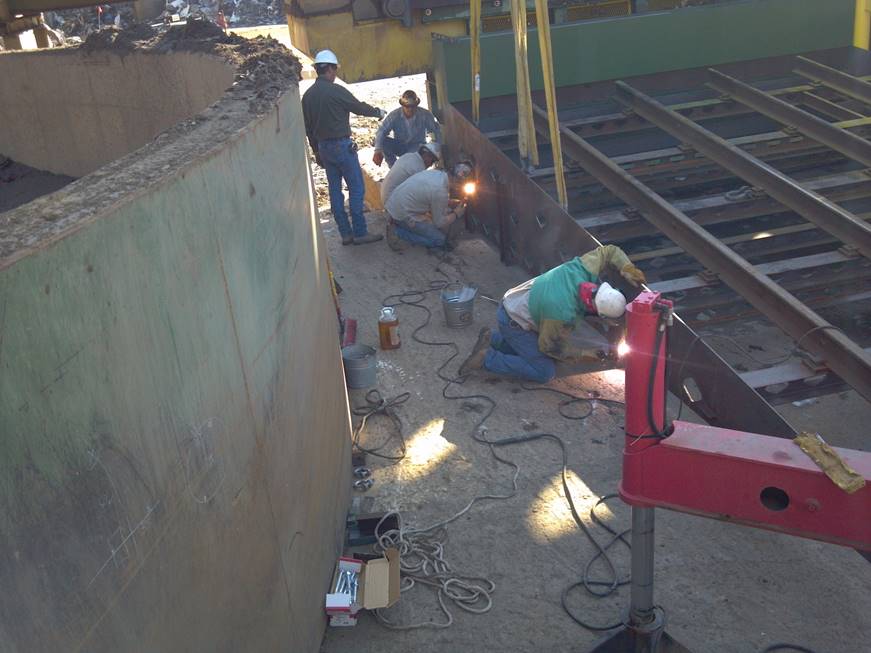 We raise and lower scale receive decks with hydraulic power and protect our men with cross-beams to replace motion parts under the scale deck.