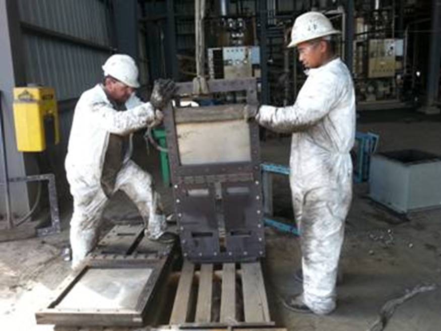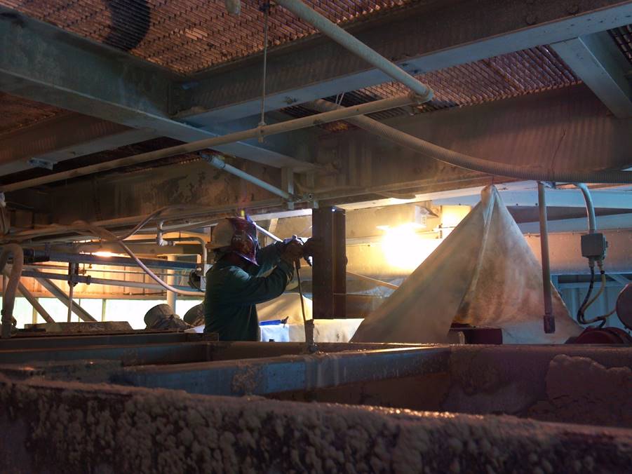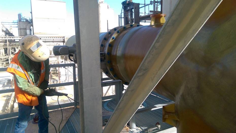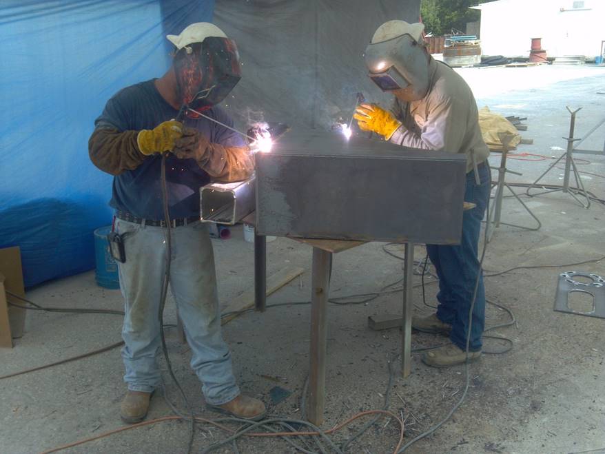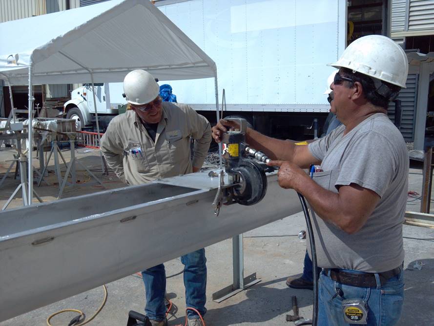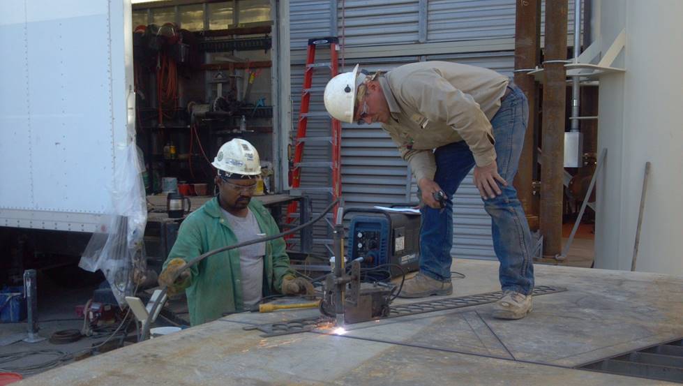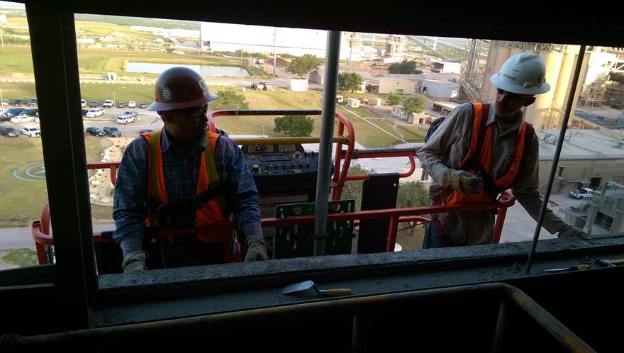 Hot gas bypass duct work at cement mill in South Texas where you know it is a formal occasion when you get a glass with a longneck beer.