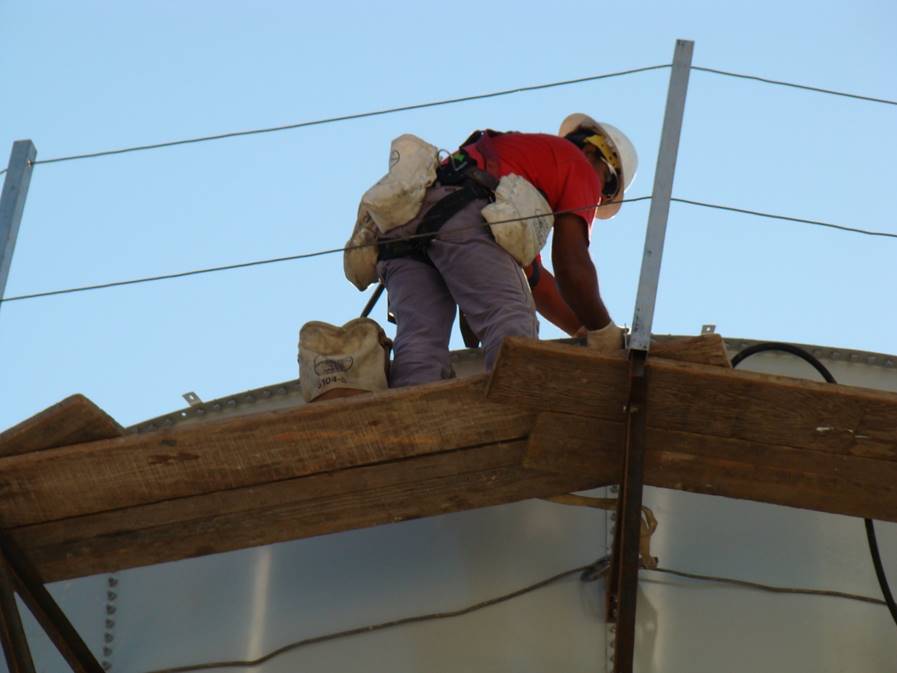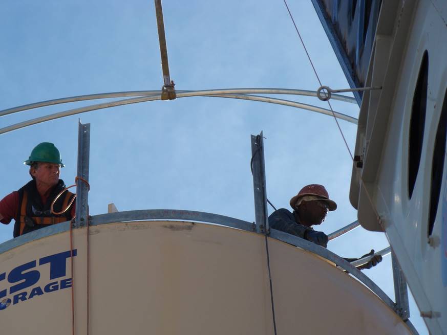 The 140 ft. X 55 ft. wall was restored upright and secured 115 hours after the storm