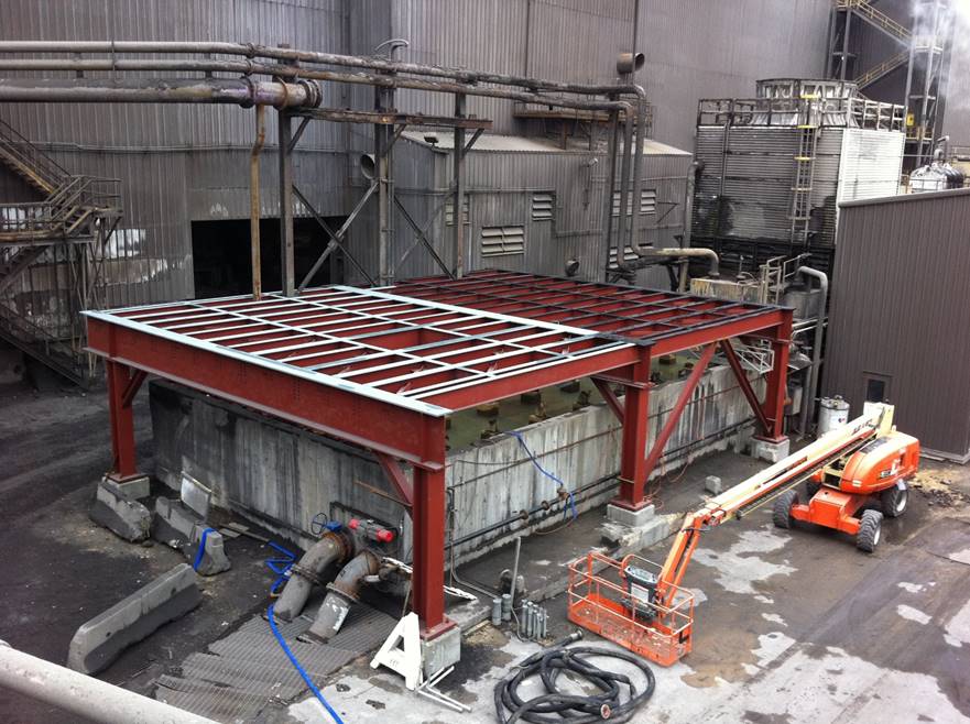 A design-build truss in an aerospace plant installed to allow installation of a 3rd autoclave.
