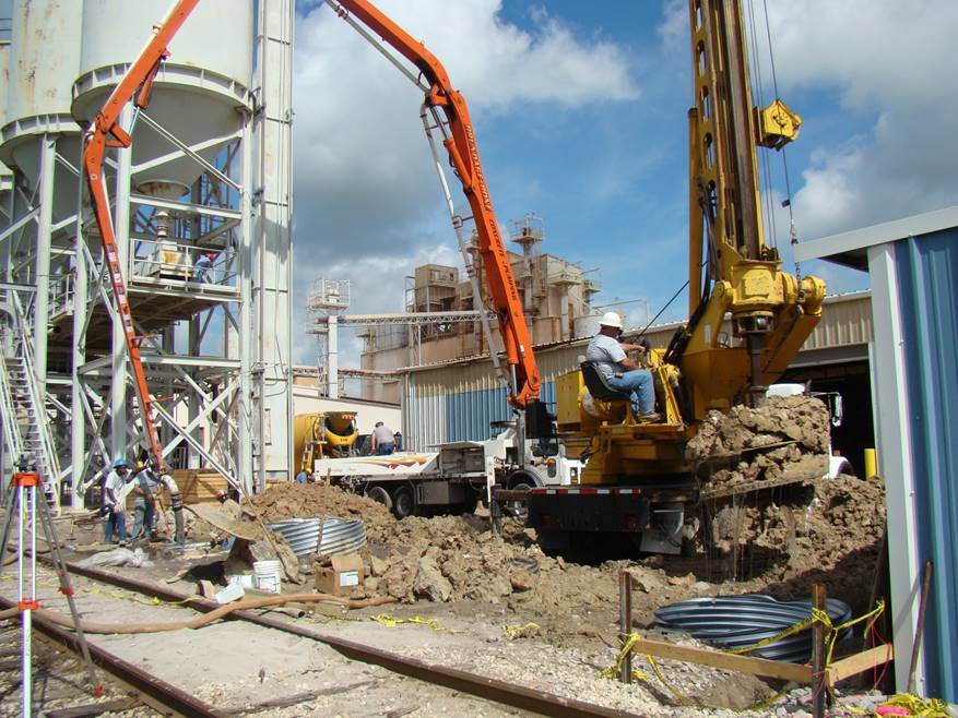 Deep foundations built through drilling fluid into t he Mississippi River Basin